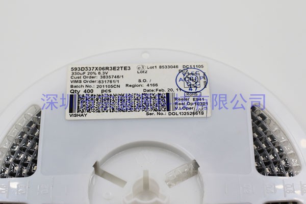 VISHAY鉭電容 7343 6.3V 330UF 593D337X06R3E2TE3